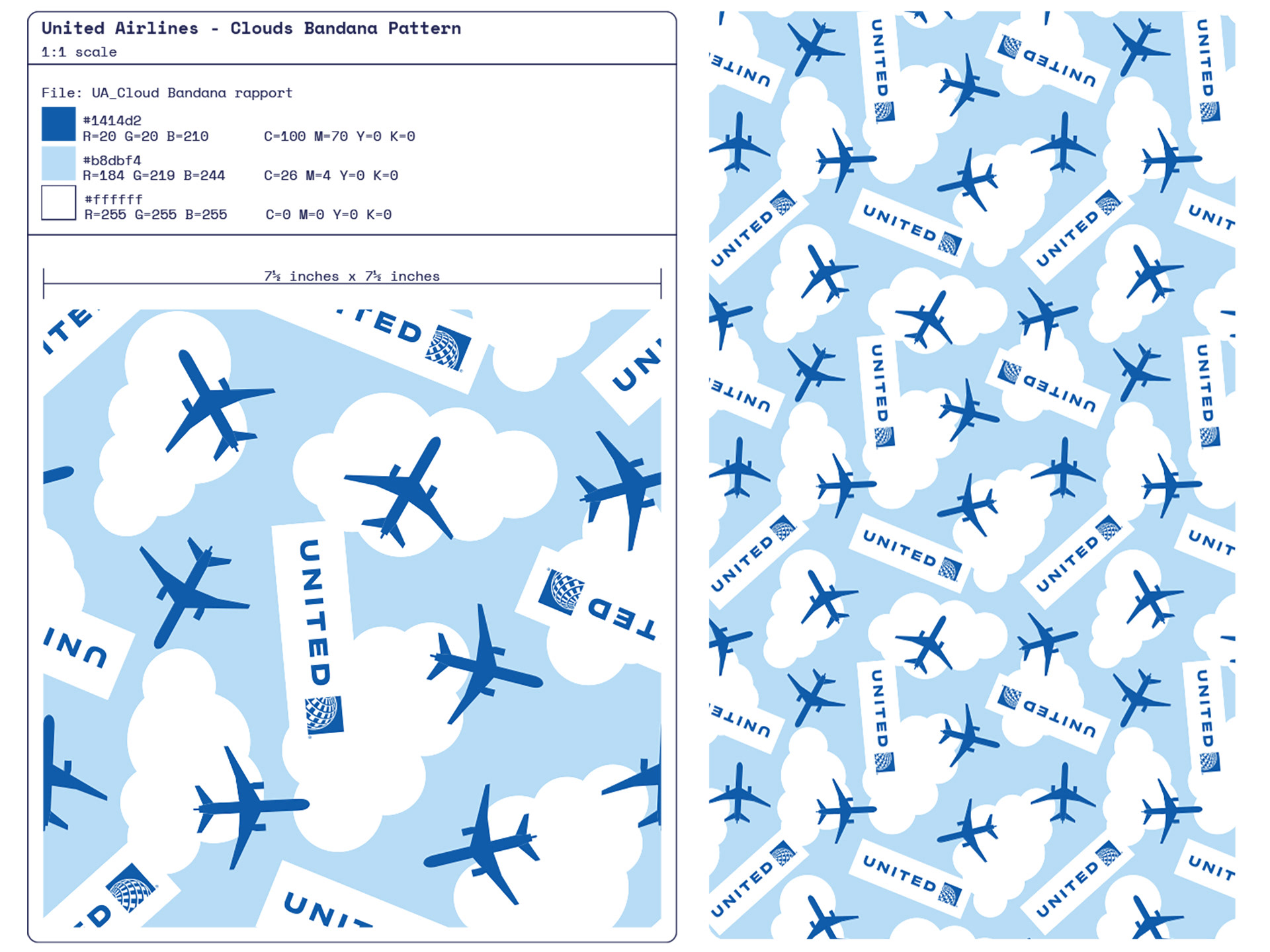 This project explores the development of a repeat pattern collection for pet bandanas, created for an airline brand looking to extend its visual identity into lifestyle pet accessories.